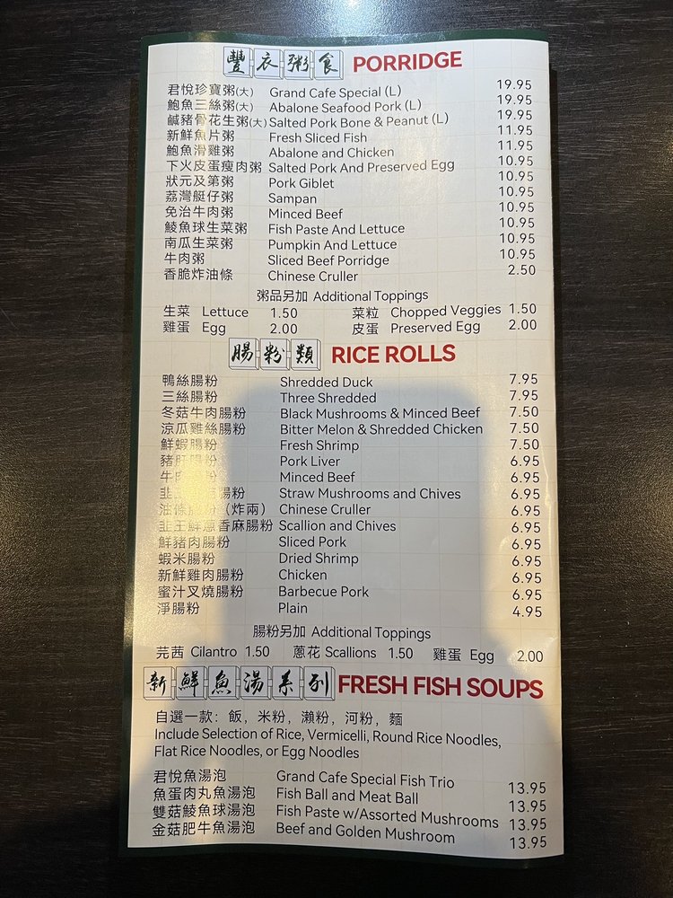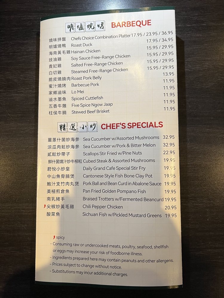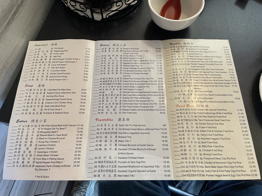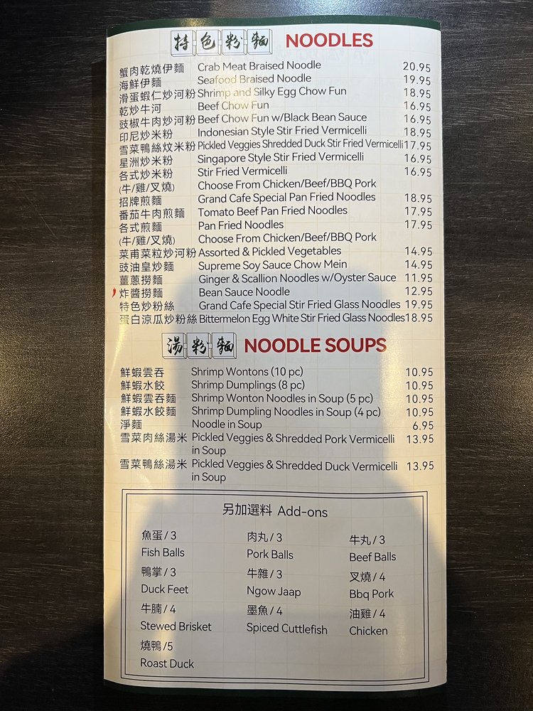 Introducing the menu at Grand Cafe, a Cantonese restaurant in Dublin, CA, featuring vegan and limited vegetarian options. Known for its good service and flavorful food, customers rave about the generous portions and authentic dishes. Standout items include shredded duck rice rolls, beef with egg & veggies, peas sprouts, salt and pepper tofu, and wonton soup with whole shrimp dumplings. The atmosphere is casual and welcoming, perfect for group dinners or solo meals. The wait staff is friendly and attentive, making every dining experience a pleasant one. With a private parking lot and outdoor seating available, Grand Cafe is a must-visit for those craving traditional Cantonese comfort food.